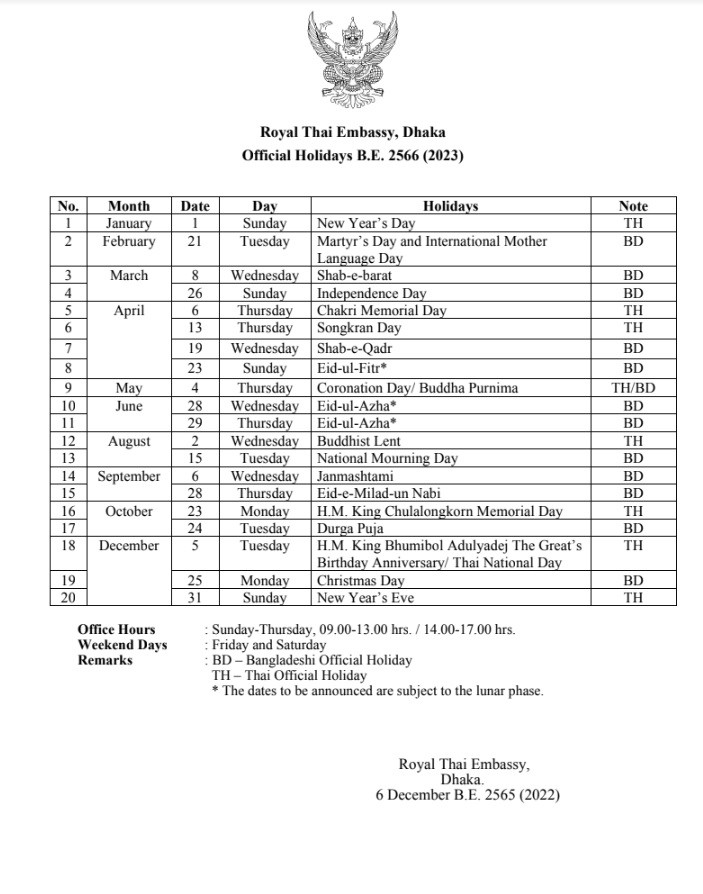 - The Royal Thai Embassy reserves the right to request for additional documents as deemed necessary. For more information log on to: www.mfa.go.th Consular Services Visa & Travel Documents